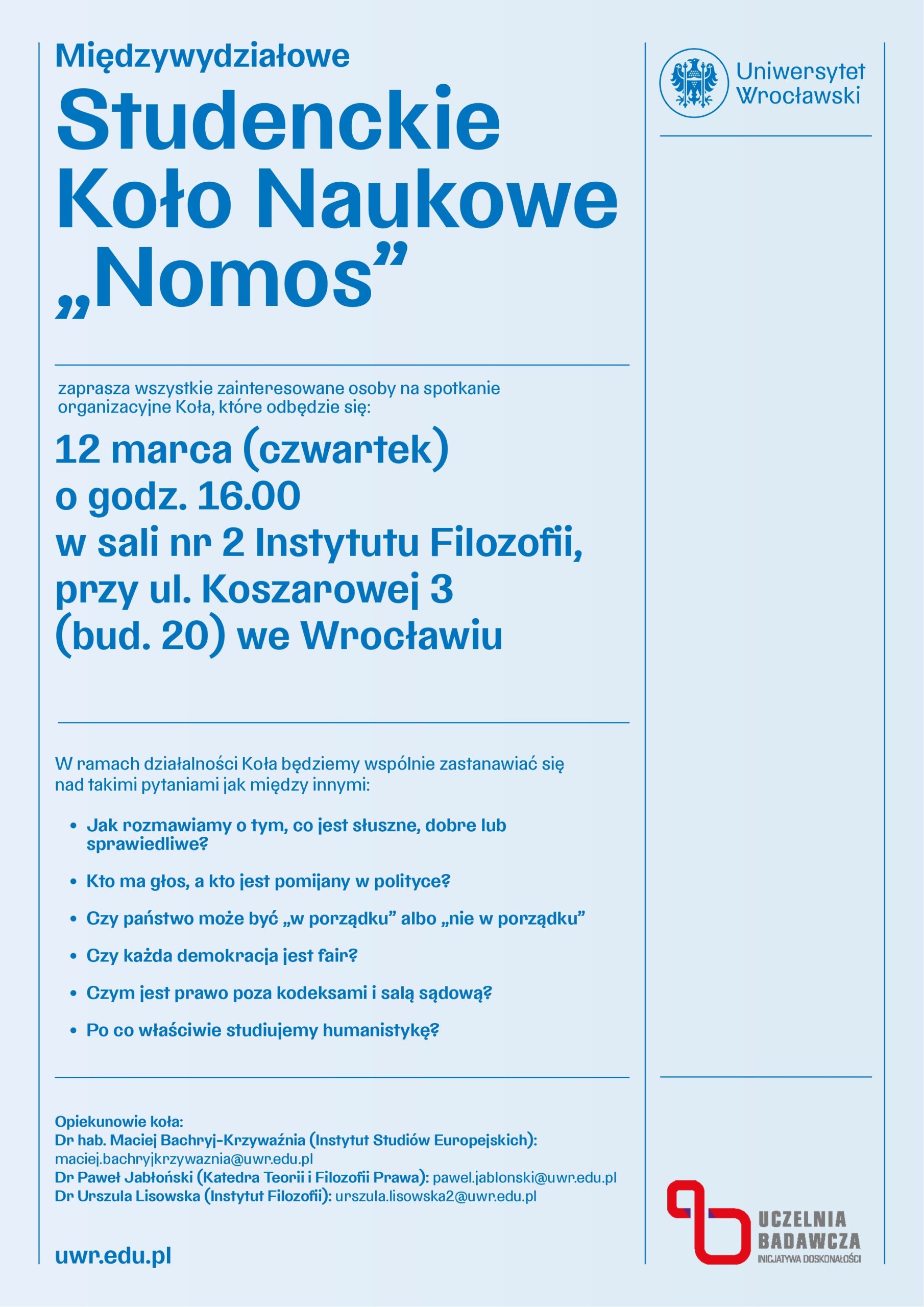 O prawach człowieka i konflikcie izraelsko-palestyńskim 20 lutego gościliśmy uczniów wrocławskich i dolnośląskich szkół średnich, z którymi współpracuje nasz Wydział. Młodzież miała okazję wysłuchać wystąpień: Już niebawem czeka nas na wykład „Mitologizacja Europejskiego Zielonego Ładu w Europie”. Poprowadzi: dr hab. Małgorzata Michalewska – Pawlak z Instytutu Studiów Europejskich. Do zobaczenia na Wydziale Nauk Społecznych! Fot. […]